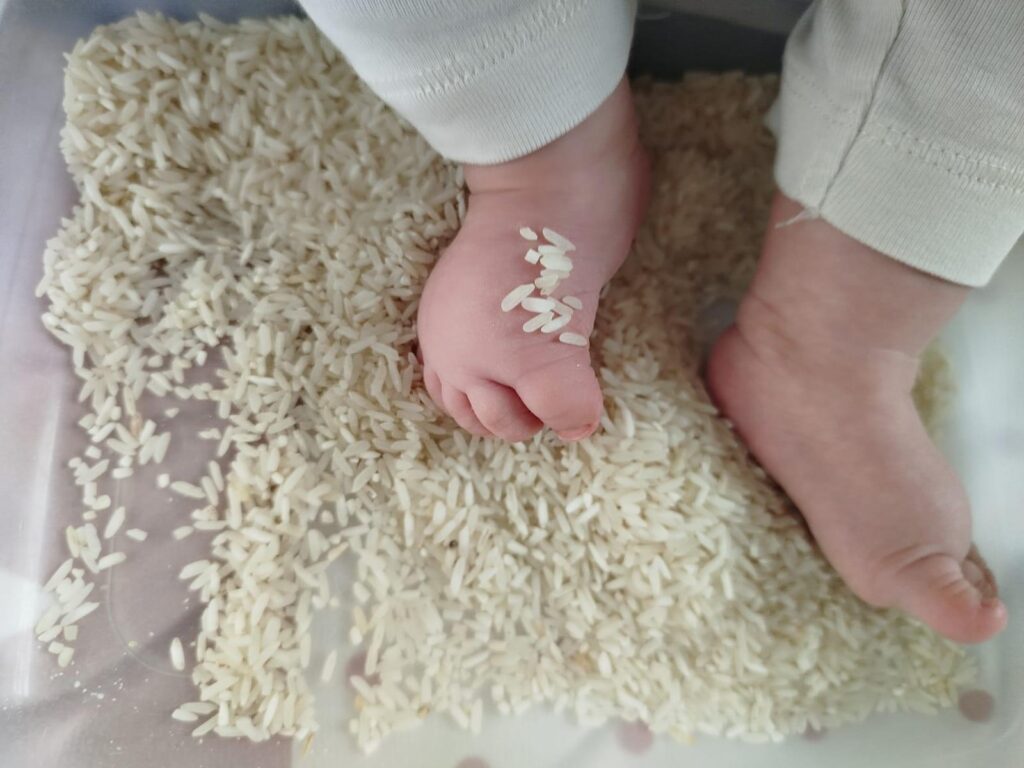 El contacto directo con materiales como el arroz estimula los sentidos del bebé, favorece el desarrollo psicomotor y despierta su curiosidad de forma natural y segura.