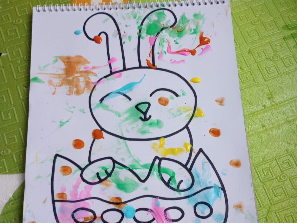 El uso libre de pintura sobre un dibujo estructurado estimula la exploración sensorial, la coordinación visomotriz y la autonomía creativa.