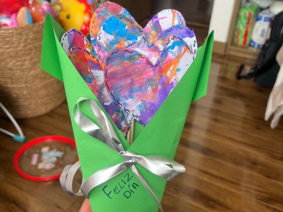 Esta actividad fortalece la motricidad fina, la coordinación ojo-mano y la expresión emocional. Al pintar, recortar y armar el ramo, los niños también desarrollan su creatividad y sentido del detalle, al tiempo que refuerzan vínculos afectivos al preparar un regalo hecho por ellos mismos.